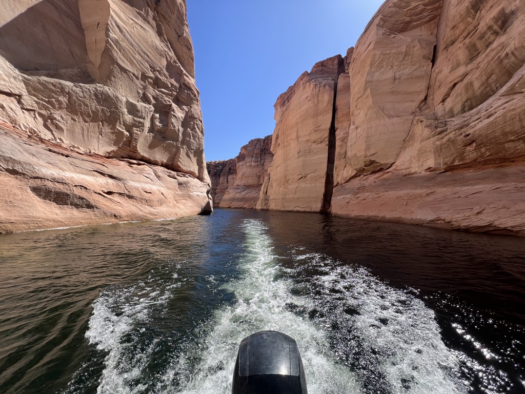 Anschließend auf zum nächsten Programmpunkt: schon gestern haben wir kurzerhand eine 1-stündige Bootstour am Lake Powell gebucht.