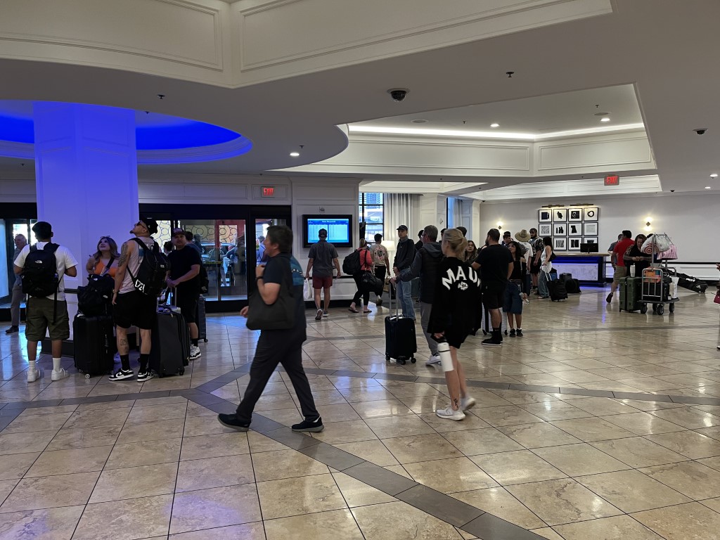 ... absoluter Wahnsinn, was heute in der Hotel-Lobby los ist! Und alle warten auf das Auto, welches vom Valet-Parking-Service gebracht wird ...